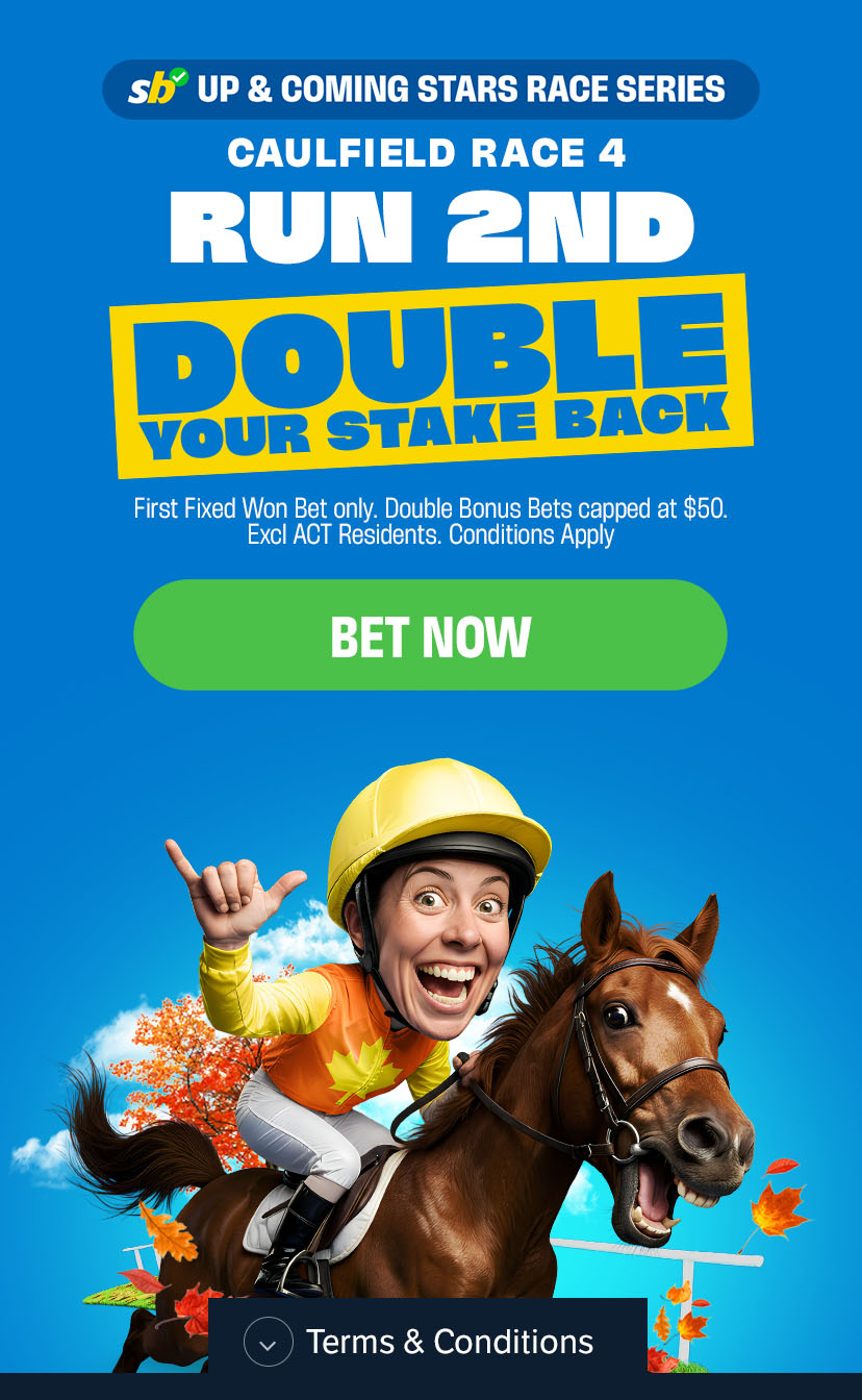 - Place a Fixed Odds win bet on Race 4 at Caulfield Heath this Wednesday 18th March 2026 (Eligible Race) & if your horse finishes 2nd get up to double your stake back in bonus bets.